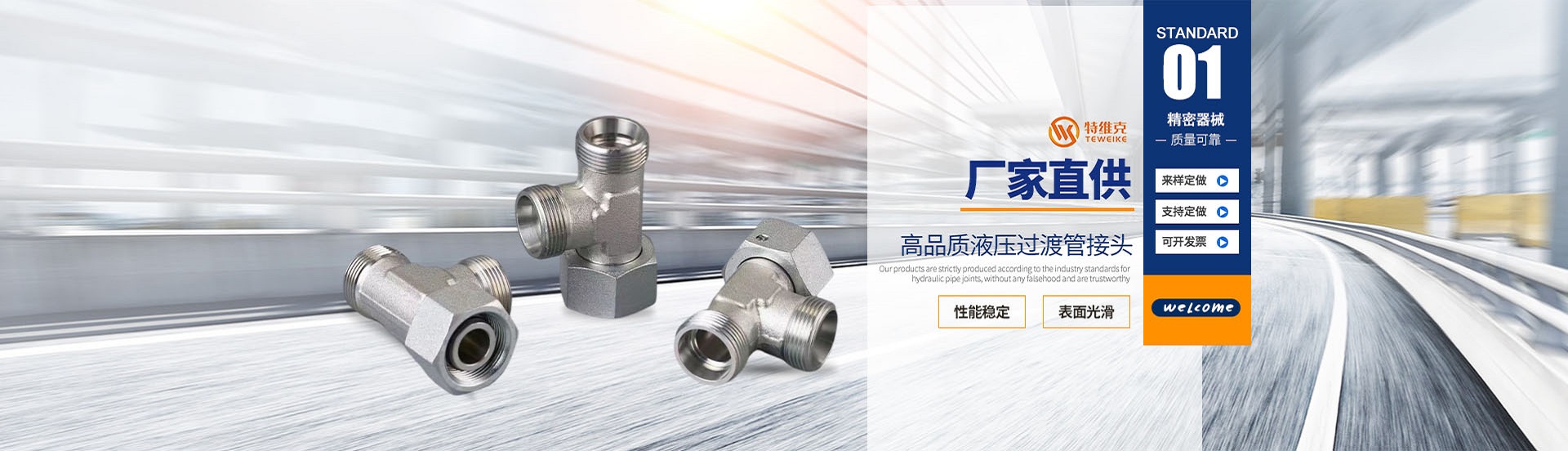 特維克公司位于國際化港口城市-浙江寧波,公司主營液壓過渡管接頭(直通、彎通、三通、四通、堵頭油塞等)。細分分類有:H型24°錐密封卡套式液壓過渡管接頭、D型74°擴口式液壓過渡管接頭、焊接式液壓過渡管接頭、ED密封堵頭油塞等等不同形式的流體連接件。廣泛應用于汽車、船舶、礦山機械、工程機械、壓縮機,冶金機械等行業的流體連接件管路系統中,產品暢銷全國20個省、市,并間接出口到歐洲及西亞。